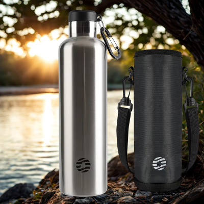 Avec notre gourde isotherme, profitez d'une eau fraĂźche mĂȘme au sommet de votre parcours de randonnĂ©e.